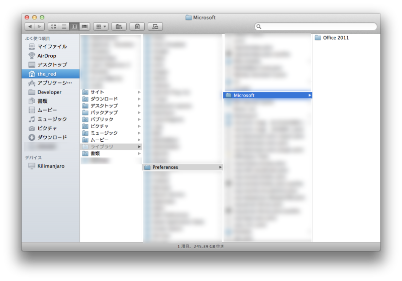 5. 「ライブラリ/Preferences」配下の「Microsoft」フォルダを削除