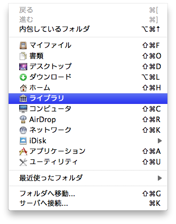 2.Finderで「移動」メニューを選択した状態で、キーボードの「Option」を押す
